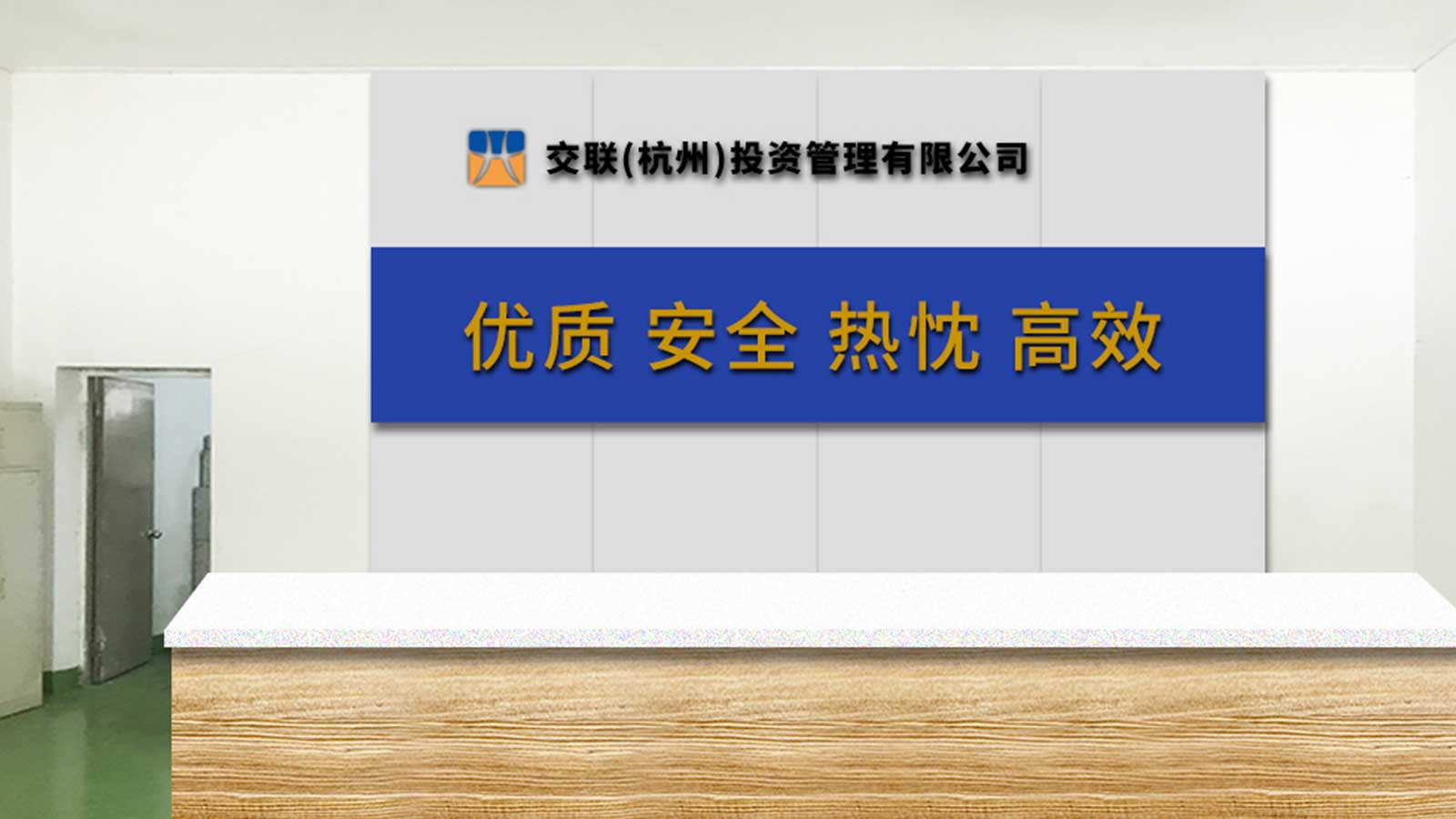 交聯電氣辦公環境改變,分為電氣和投資兩處辦公室,委托石特為他們做了簡潔的形象墻設計。