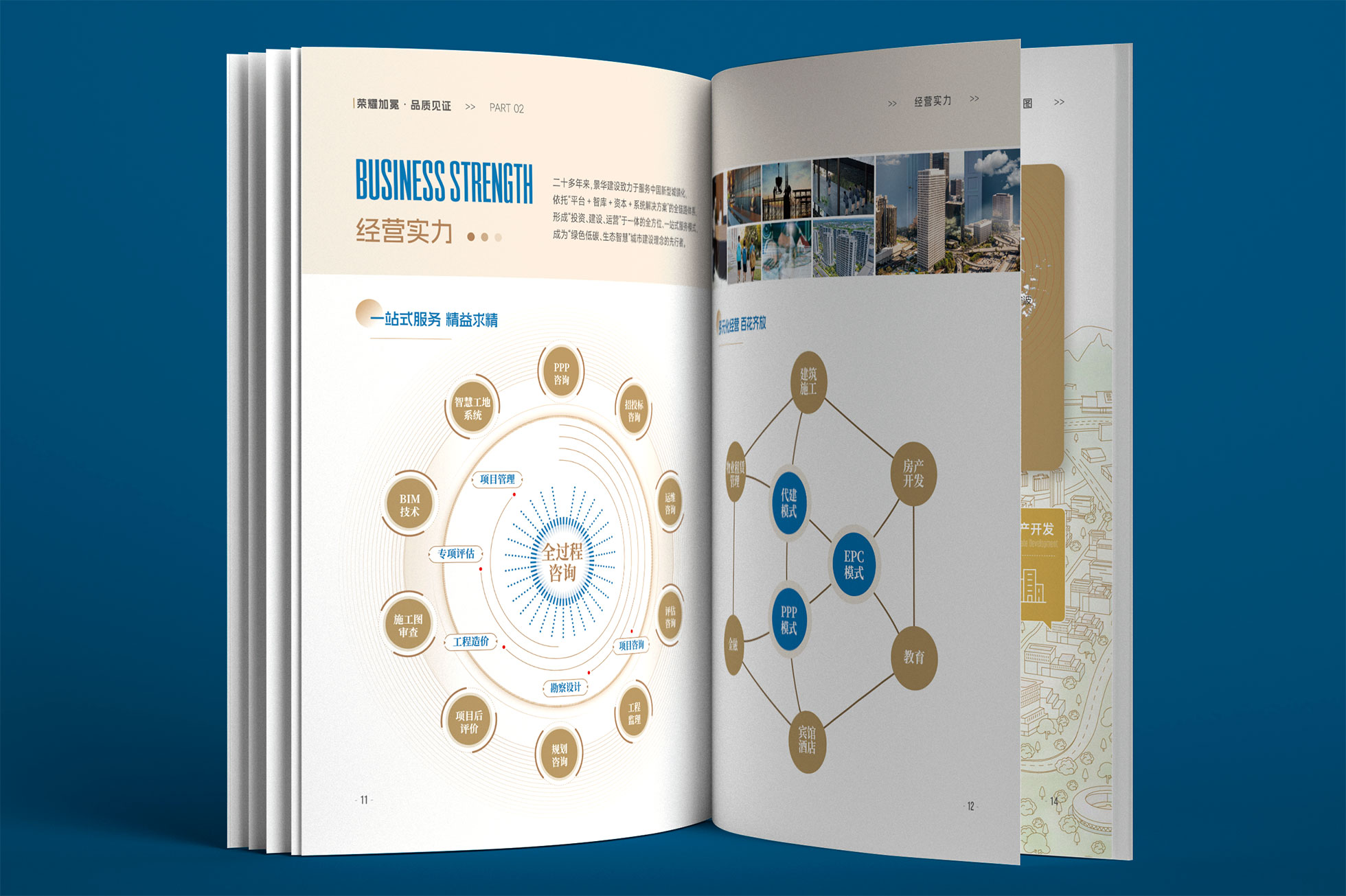 品牌資產統一與跨平臺延展: 確保畫冊設計語言與景華建設的VI系統嚴格統一,強化品牌記憶。畫冊中的高質量圖片與核心文案可直接用于企業官網、項目投標文件等,形成多渠道、一體化的品牌形象輸出。