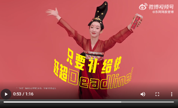 在奈雪東阿發(fā)布的TVC短片中,“壓力山大”的都市白領(lǐng)因為一杯阿膠奶茶,橫掃疲態(tài)穿越成千年前元氣滿滿的唐宮仕女,詼諧的鏡頭語言既彰顯了兩個品牌對阿膠歷史的傳承,也傳遞出新時代“輕松養(yǎng)生”的健康觀念,生活忙碌也要記得關(guān)愛自己,一杯奶茶也可以隨時隨地撒個“膠”,小“補”一下。