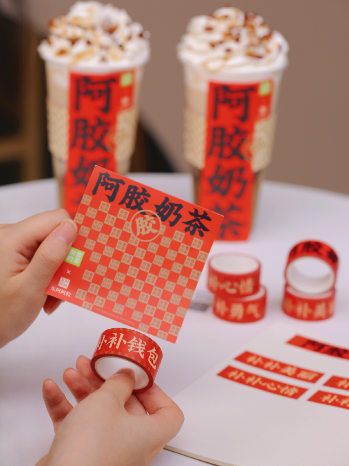 “5年福鼎老白茶+東阿阿膠”組成開工爆款,東阿阿膠寶藏茶、東阿阿膠奶茶,與東阿阿膠黑芝麻紅棗糕,三款聯(lián)名產(chǎn)品于2月3日在奈雪門店上線,同時上線的還有主題手袋、杯套、膠帶等限量周邊,并在全國設(shè)置百余家聯(lián)動門店,消費者可在聯(lián)動門店參與打卡活動。