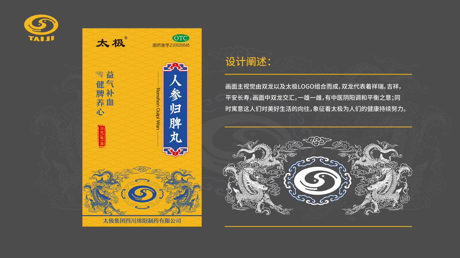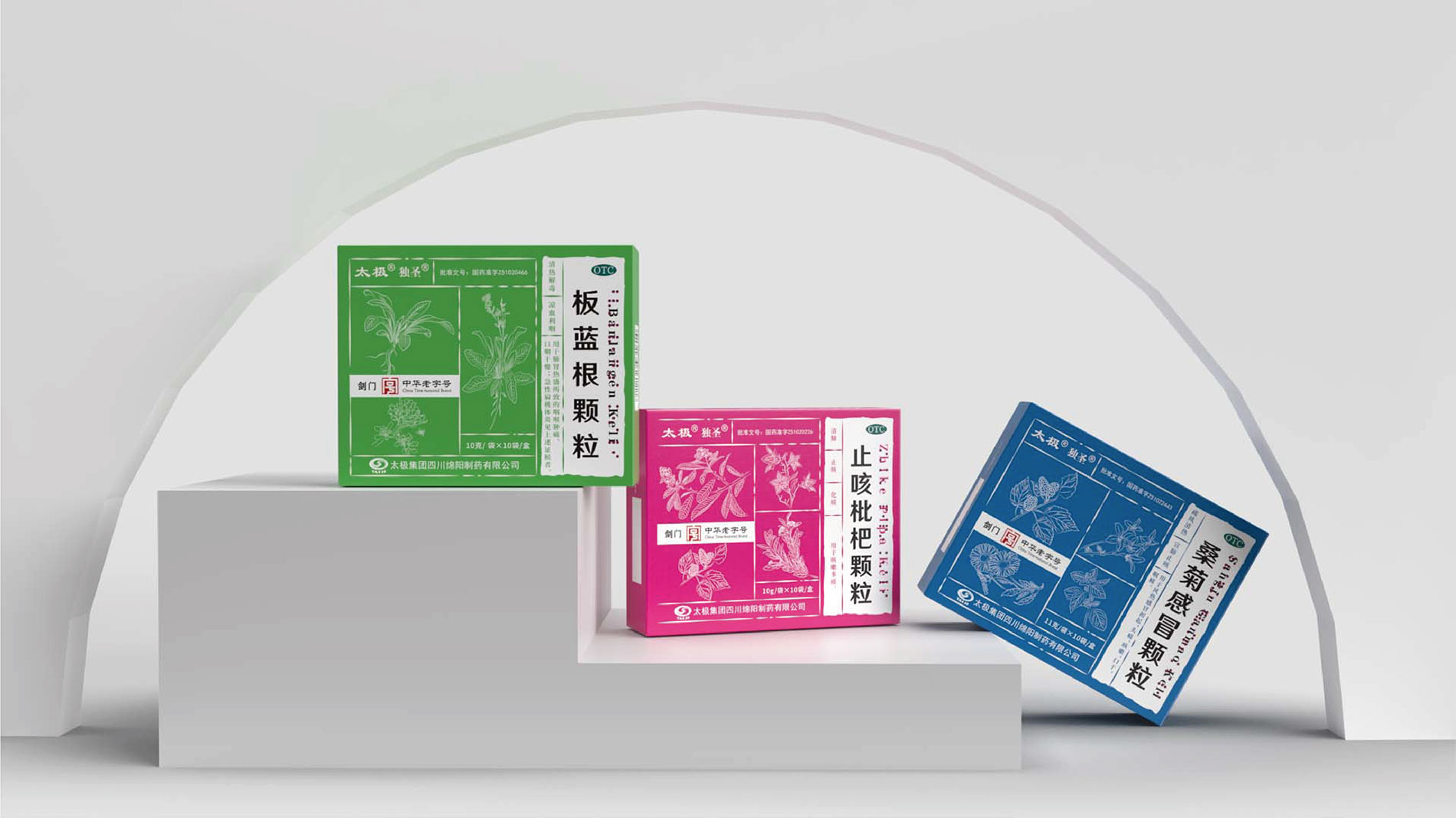 系列化規(guī)劃: 打破原有產(chǎn)品“各自為戰(zhàn)”的視覺混亂,建立統(tǒng)一的品牌視覺基因。通過色彩體系、符號元素、版式規(guī)范的標準化,將顆粒系列、丸劑系列等不同劑型的產(chǎn)品進行家族化整合,強化“太極綿陽制藥”的整體品牌印象,提升終端陳列的視覺沖擊力。