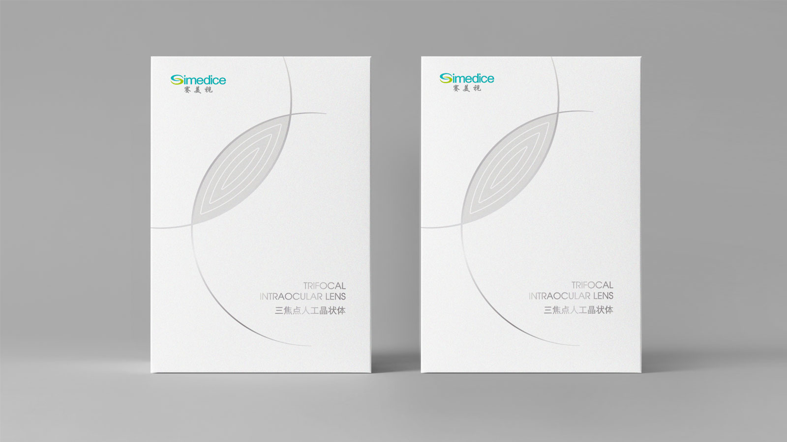 這是一款人工晶狀體的包裝設計,石特在了解其具體特點及用途之后,著手進行設計:其主畫面以兩條交匯的線條構成,中間交匯的區(qū)域形成一個“眼睛”與產品“晶狀體”契合,同時半弧形相交的“s”與企業(yè)logo中的首字母吻合;包裝整體以白色為主、設計簡潔,給人安全感覺,另外,包裝成品還加以燙銀工藝,以此增加包裝質感,盡顯高級。