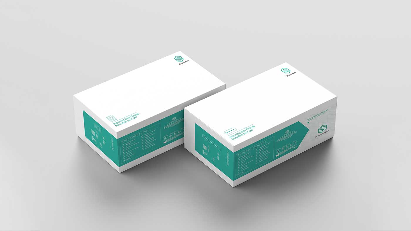 此次醫(yī)療器械包裝設計重點策劃術創(chuàng)機器人公司手術器械產(chǎn)品多規(guī)格,多型號的解決方案。石特為其量身策劃設計了兩款通用包裝盒型,分別裝置鈍性閉孔器和插管產(chǎn)品和一次性套管座和一次性的鈍性閉孔器產(chǎn)品;整體設計延續(xù)前期打造的主要形象元素,使其保持公司品牌形象的統(tǒng)一性。