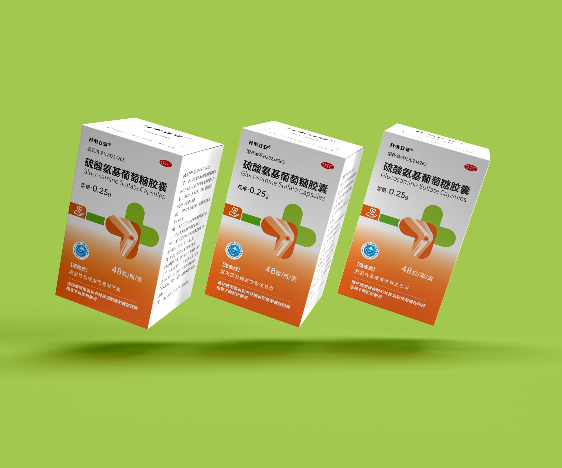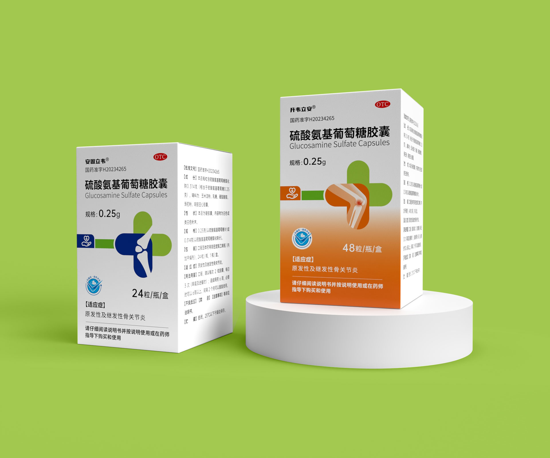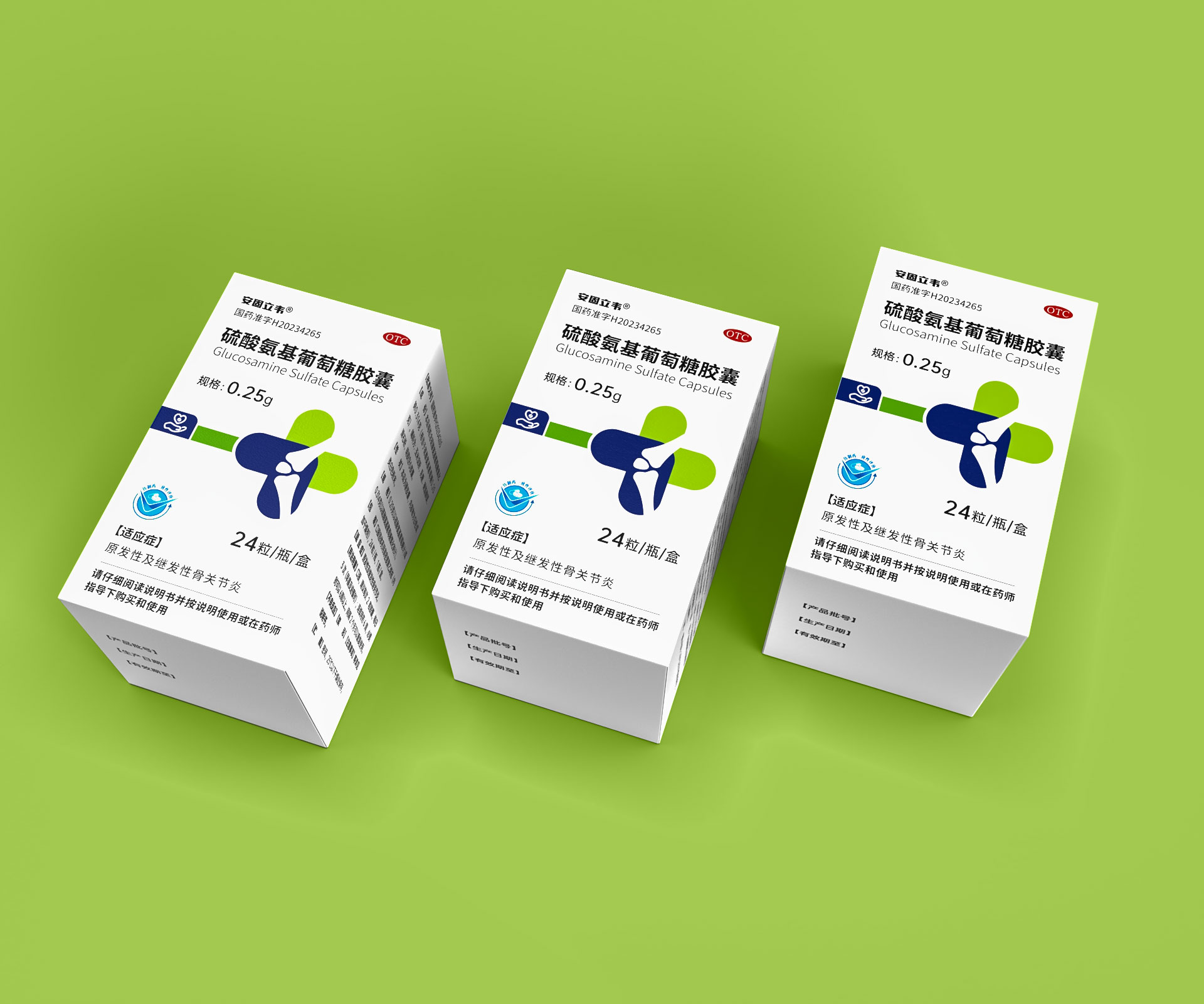 當(dāng)硫酸氨基葡萄糖膠囊、西洛他唑片等系列產(chǎn)品陳列于藥店時(shí),統(tǒng)一的色彩基因、符號(hào)系統(tǒng)形成 **“安星醫(yī)藥專(zhuān)區(qū)”** 視覺(jué)沖擊,區(qū)別于競(jìng)品零散布局,提升品牌貨架辨識(shí)度,助力藥師推薦、患者選購(gòu)。